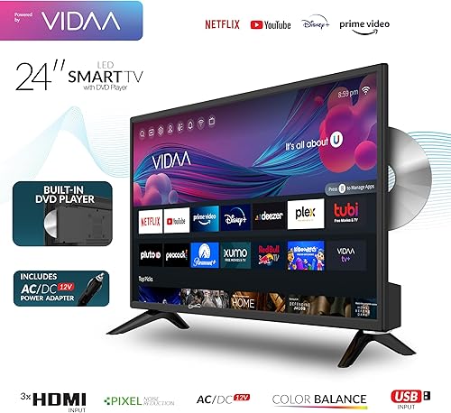 SuperSonic SC-2426SDVD 24 iNCH Class 1366×768 720p HD LED Smart TV with built-in DVD/CD Player, 3x HDMI, ARC, USB, Wi-Fi, AC/DC Compatible for Home, Kitchen, or RV Camper, DC Car Cord Included [SuperSonic link] [at Amazon]